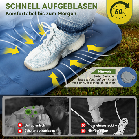 EASY INFLATION IN 60 SECONDS - Enjoying the comfort of a perfect camping sleeping pad has never been easier. With the built-in foot pump, you can fully inflate the sleeping pad in under a minute. This ease of use ensures that you can focus on enjoying nature and unforgettable experiences.